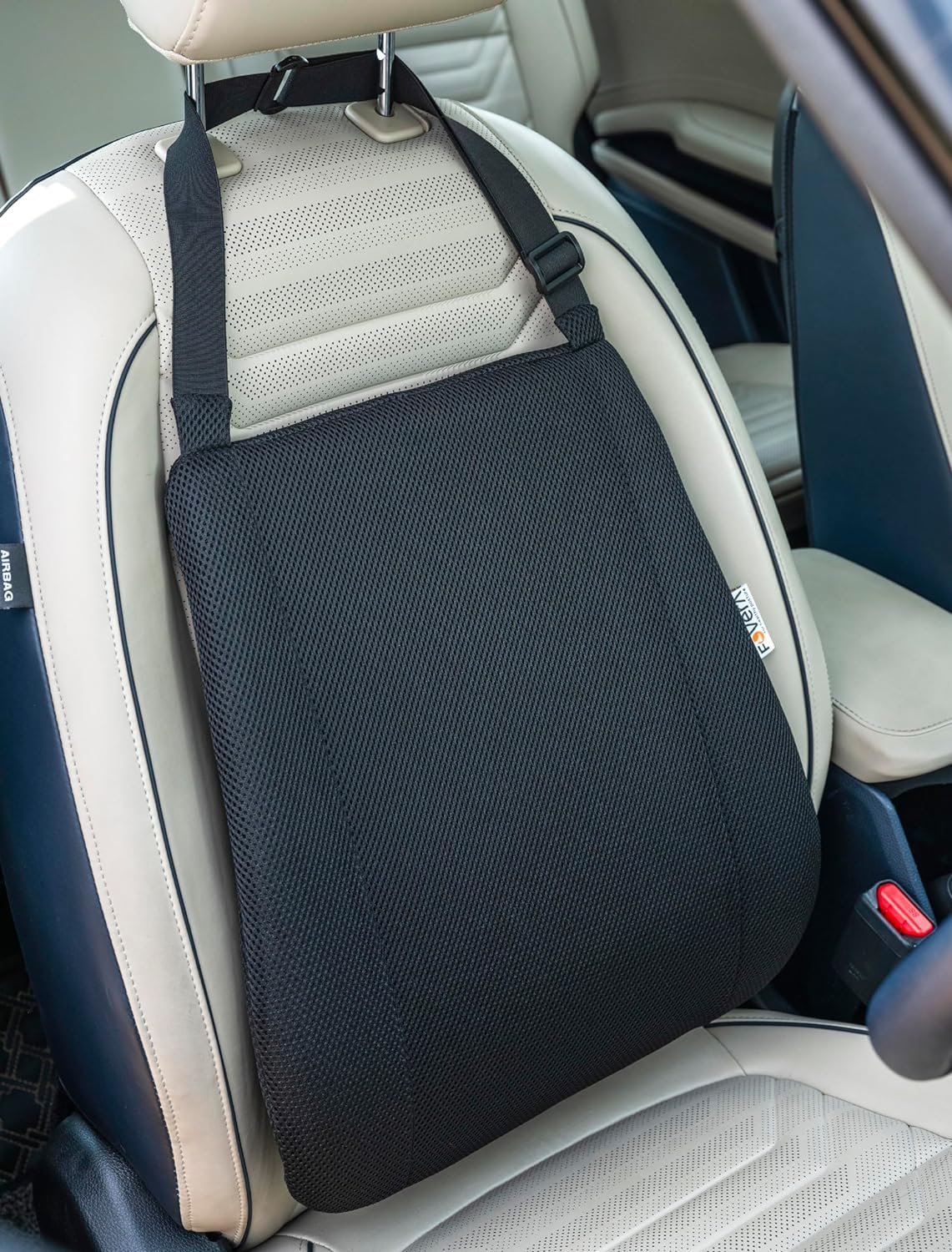 SUITABLE FOR ANY TYPE OF CAR: Through the adjustable strap, this car back rest cushion can be mounted on any type of car seat. Its universal size makes it the ideal fit for all kinds of car seats. The stylish shape and design of the cushion complement the interior of your car.