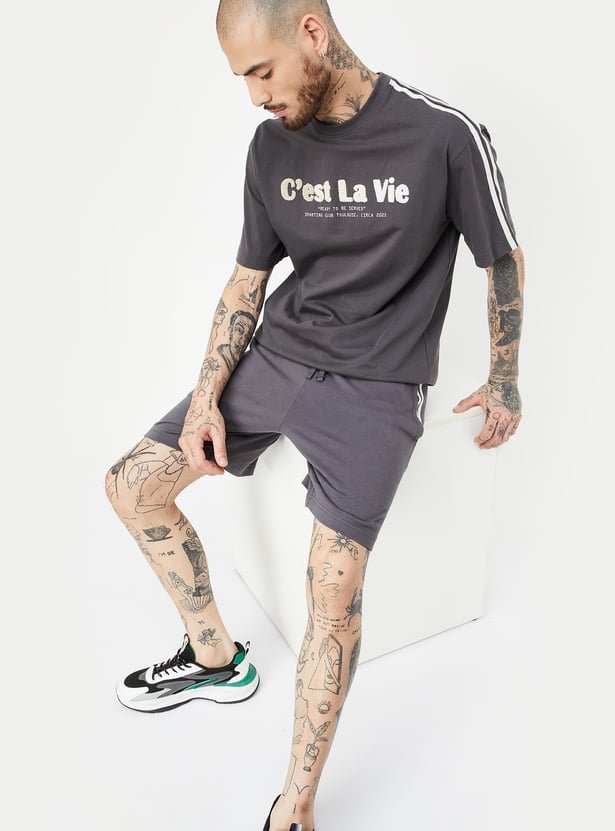 Make a bold statement with this chenille embroidered oversized sports t-shirt featuring a crew neck and half sleeves. The relaxed fit and straight hem offer comfort and a laid-back style, perfect for casual days.