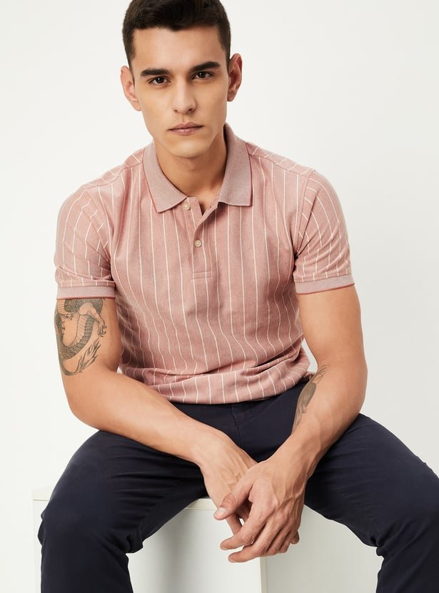 Men Slim Fit Striped Polo T-shirt