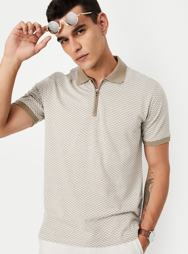 This textured polo t-shirt features a classic polo collar and a zip closure for a modern twist. With half sleeves, it offers both comfort and style, making it perfect for casual outings or relaxed weekends.