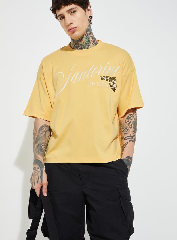 Stay effortlessly cool in this embroidered boxy fit T-shirt, designed with a classic crew neck and relaxed half sleeves. A perfect blend of comfort and subtle style for your everyday wardrobe.